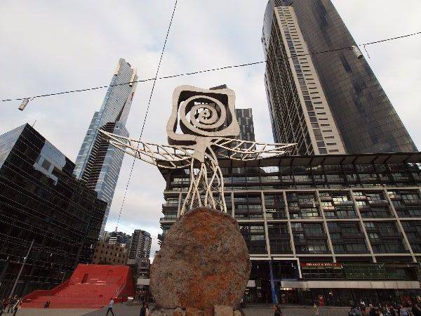 Die zweit grösste Stadt Australiens im Südosten mit ca. 3.4 Millionen Einwohnern beeindruckte uns nicht nur durch das prächtige Aussehen, sondern auch mit kostenlosen öffentlichen Verkehrsmitteln. Ein Bus, der zu den wichtigsten Sehenswürdigkeiten in der Stadt fährt, sowie eine Strassenbahn, die die Innenstadt umrundet, sind gratis. So vergassen wir sofort die gebührenpflichtige Autobahn von unserer Anfahrt. Auf einer 90 minütigen Rundfahrt verschafften wir uns mal einen Überblick über die Stadt. Drehpunkt ist die schöne Flinders Street Station, Hauptbahnhof an der Ecke Flinders und Swanston Street, aus dem Jahre 1910. Neben vielen modernen Bauten zeugen auch einige Britische Gebäude die Vorherrschaft aus dem letzten und vorletzten Jahrhundert. Vom 88. Stock des Eureka Towers, 297.3 Meter hoch, hatten wir eine Rundsicht über ganz Melbourne.