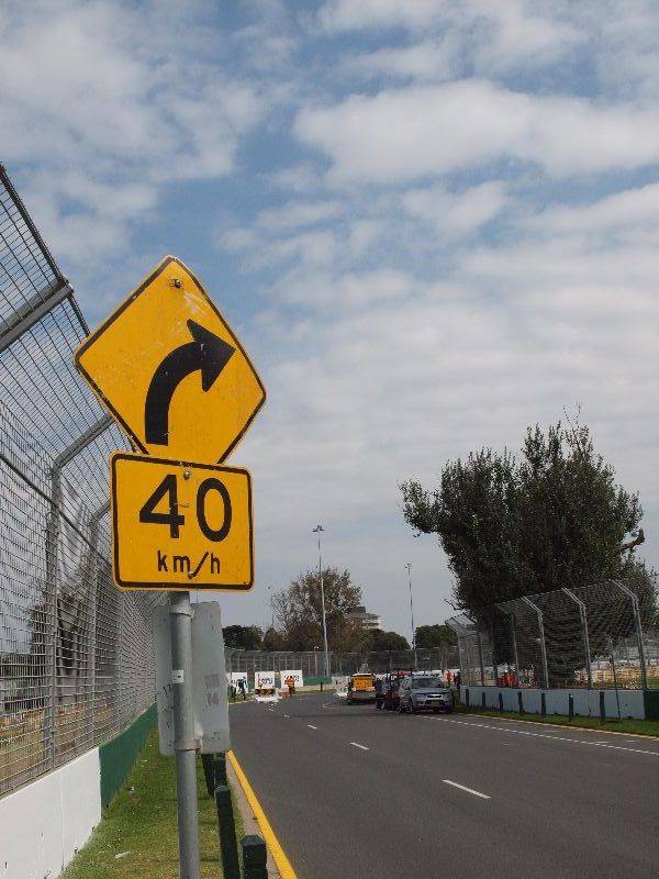 Zurück zum Sport ging es in den Albert Park. Der Park, mit künstlichem See und öffentlichen Strassen rings herum, wird seit 1996 jeweils im März zur Formel 1 Rennstrecke umgebaut. Drei Monate dauern die Aufbauarbeiten der Infrastruktur sowie in den sechs Wochen nach dem Rennen der Rückbau. In einer Woche heisst es dann: Gentlemen start your engines! Der Grosse Preis von Australien findet am 27. März 2011 als Saisonauftaktrennen statt, nachdem Bahrain abgesagt werden musste. So hatten wir die Gelegenheit auf der Rennstrecke zwischen den beiden 90 Grad Rechtskurven Ascari und Stewart, vor der Schikane zur Boxeneinfahrt herum zu laufen. Gut wird dies während dem Rennen zu erkennen sein, wenn die Boliden unter der „UBS“ Werbung hindurch rasen. Vor der Steward Kurve muss noch ein Verkehrsschild entfernt werden. Ansonsten drohen horrende Bussgelder, wenn 24 Fahrer aus 12 Teams 58 Runden lang mit über 100 Sachen durch die Kurve brettern, wo ja eigentlich nur 40 km/h erlaubt wären. Bei der Streckenbesichtigung trafen wir den Mann, der die Linie zieht. Der ausgewanderte Österreicher zeichnet seit acht Jahren auf dem Albert Park Circuit die Linien auf den Asphalt. Er war gerade unterwegs mit seiner Crew und zog die gelbe Aussenlinie. Er meinte bis zum nächsten Wochenende gebe es noch stramme Waden, denn auf der 5.303 Kilometer langen Rennstrecke gibt es noch viele Linien zum Zeichnen. Na dann, auf geht’s!