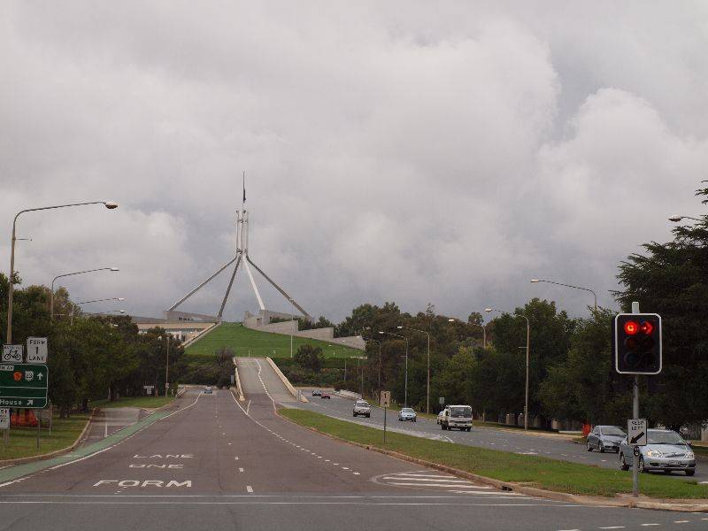 Pebbly Beach ist bekannt für die Kängurus die am Strand herum hüpfen. So fuhren auch wir an den Strand um die einmaligen Beuteltiere zu sichten. Kaum waren wir aus dem Camper ausgestiegen, kreuzte ein etwa 1.2 Meter langer Waran unseren Weg. Wir blieben stehen und der Vierbeiner mit dem langen Schwanz kroch gemütlich über den Gehweg. Am Strand hielten wir Ausschau nach hüpfenden Kängurus, doch so fest wir uns auch anstrengten es waren keine Hüpfer zu sehen. So mussten wir erfolglos weiter ziehen. Von Batemans Bay aus verliessen wir wieder die Küste und fuhren Richtung Hauptstadt Australiens, nach Canberra.