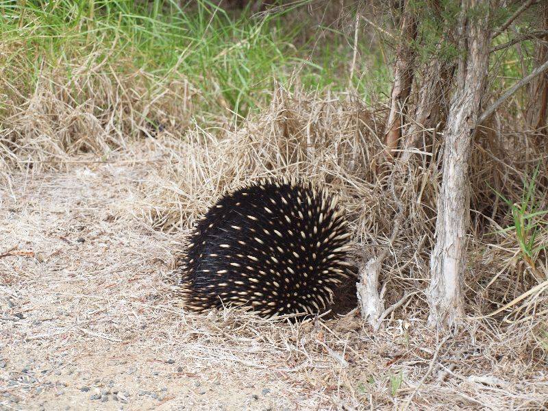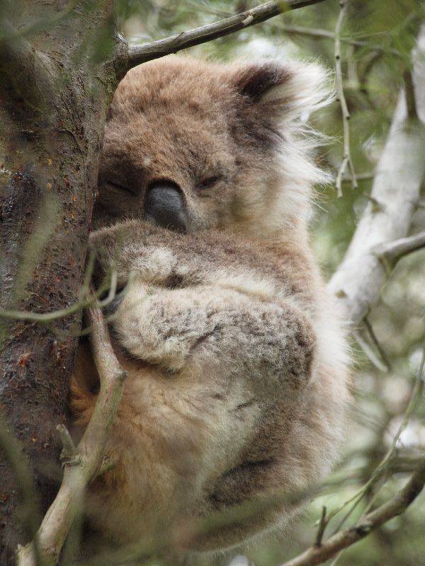 Das Koala Conservation Centre auf Phillip Island ist ein Naturreservat für Koalas, wo sich die Tiere in ihrem natürlichen Lebensraum frei bewegen. Auf erhöhten Gehwegen kann man durch den Eukalyptuswald spazieren und in den Bauwipfeln und Astgabelungen Ausschau nach den süssen Koalas halten. So entdeckten wir auf unserer Tour etwa zehn von den kleinen Fellknäueln in den Bäumen. Unglaublich, wie man so auf einem Baum schlafen kann. In Astgabeln oder auf dünnen Ästen sitzen sie zusammengerollt, halten sich, wenn überhaupt, mit einer Pfote fest und schlafen tief. Ein 18 jähriges Weibchen war ganz nahe am Gehweg in einer Astgabel. Gerne hätten wir den kleinen „Bären“ geknuddelt. Da sich die Tiere nur von Eukalyptusblättern ernähren, haben sie zu wenig Energie, um aktiv zu sein. So schlaffen sie 20 Stunden am Tag – man, das ist ein Leben! Als wir uns von der faulen Bande satt gesehen hatten, fuhren wir zu einer Schokoladenfabrik. Doch bevor wir etwas von der brauen Köstlichkeit sahen, entdeckten wir einen Ameisenigel. Der kleine schwarze Igel mit den gelben Streifen war neben dem Fussweg auf Futtersuche. Wir waren danach auch auf Futtersuche und deckten uns mit ein paar Köstlichkeiten ein. Auf der Rennstrecke von Phillip Island findet am kommenden Wochenende ein Classic Race mit alten Rennautos statt. So begegneten wir unterwegs einigen klassischen Rennwagen.