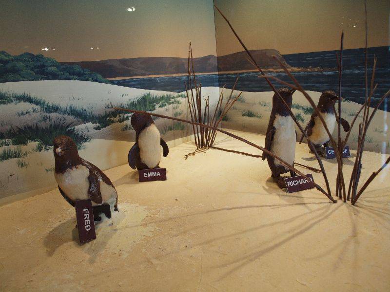 Auf Phillip Island angekommen, fuhren wir gegen Abend zur Pinguin Parade, ein Naturschauspiel der ganz besonderen Klasse. Nach Sonnenuntergang, kurz nach sieben Uhr, setzten wir uns am Strand auf eine Tribüne und warteten mit gespanntem Blick aufs Meer hinaus. Wir warteten und warteten. Gegen acht Uhr sollte die Parade beginnen, doch es dauerte noch weitere acht Minuten bis sich etwas regte. Wie aus der Gischt geboren, von der letzten Welle die den Strand erreichte, standen plötzlich kleine Zwergpinguine halb im Wasser, halb am Strand. Die kleinen Geschöpfe, keine 30 Zentimeter gross, müde von der Futtersuche tagsüber, entsteigen dem Meer und trampeln halbwegs aus dem Wasser. Folgt von hinten eine grössere Welle, überspült es die ein Kilogramm leichten Zweibeiner. Dort wo das Wasser die letzten feuchten Spuren im Sand hinterlässt, warten die Pinguine aufeinander, bis eine Gruppe komplett „gestrandet“ ist. 10 bis 15 Stück stehen nahe beieinander und wie auf Kommando geht es los. Die ganze Truppe watschelt eilig über den knapp 10 Meter langen und weichen Sandstand bis sie die schützenden Büsche erreichen. Von dort geht jeder seinen eigenen Weg, bis er sein zu Hause wieder erreicht hat. Von den Gehwegen die zum Strand führen, konnten wir quasi mit den Kleinen mitlaufen und sie aus nächster Nähe beobachten, wie sie durch die Buschlandschaft watscheln. Immer wieder blieben sie stehen, ruhten sich aus, zupften ihre Federn zurecht und zottelten weiter. Zum Greifen nah standen wir neben den kleinen „Schnüggis“ und schauten ihnen zu, ein einmaliges Naturschauspiel. Bei Sonnenaufgang geht der ganze Tross wieder zurück ins Meer zum Jagen. Leider war es strengstens verboten Fotos zu machen, denn gewisse Leute sind zu blöde, um zu verstehen, dass man nachts die Tiere mit dem Blitzlicht quält. So wurde komplettes Foto- und Filmverbot verordnet (auf Youtube suchen nach: penguin parade phillip island, da gibt es genügend Anschauungsmaterial). Unser Foto auf der Homepage haben wir im Visitercenter von einem bestehenden Foto gemacht.