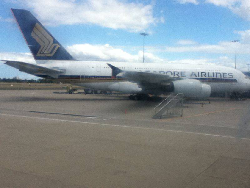 Der Flug von Auckland nach Sydney dauerte ziemlich genau drei Stunden und es war perfektes Flugwetter. Der Anflug auf die grosse Insel war wunderschön. Wir kreisten einmal halb über die Küstenlandschaft und halb über dem Pazifischen Ozean. Vom Meer her führen lange verästelte Buchten weit in das Innere der Küstenregion hinein, teilweise waren grosse hellbraune Sandstrände auszumachen – das verspricht so einiges. Der A320 der Air New Zealand rollte nach der Landung langsam zu seinem Dock und parkte neben einem noch nie live gesehenem Vogel – überdimensional gewaltig! Wie ein aufgepumpter Jumbo-Jet. Es war ein Airbus A380 der Singapore Airlines, ein Monster von einem Flugzeug. Unser A320 sah daneben gerade mickrig aus. 72.6 Meter lang, 24.1 Meter hoch und eine Flügelspannweite von 79.8 Metern, Platz für 480 bis 555 Passagiere. Dies sind nur ein paar der Eckpunkte dieses Flugzeuges. Wenn alles nach Plan läuft, werden wir den letzten Flug auf unserer Reise von Singapur nach Zürich ebenfalls mit einem A380 machen.