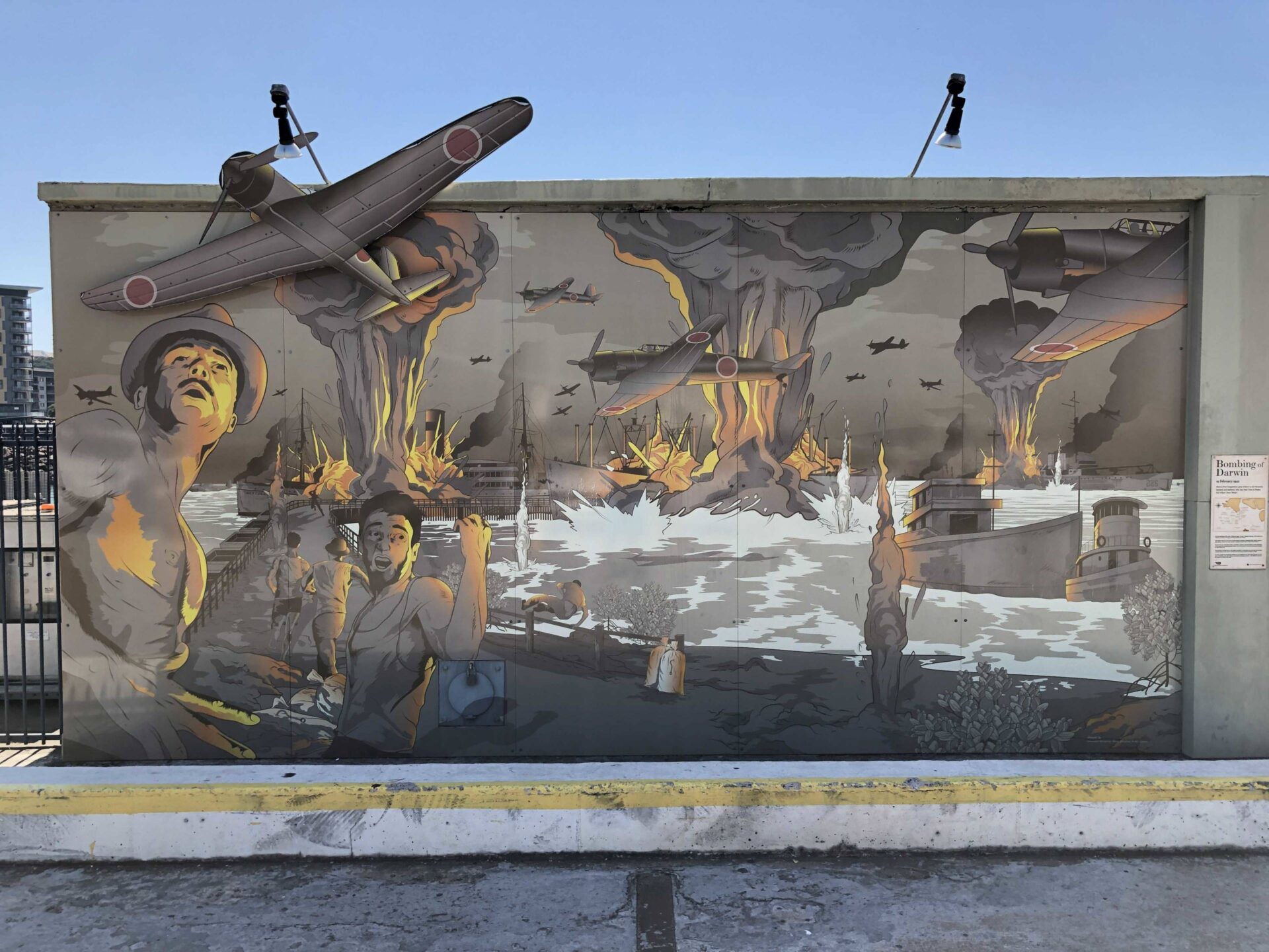 In Kombination mit dieser Ausstellung wird auch das Thema vom 19. Februar 1942 aufgearbeitet, als Darwin im zweiten Weltkrieg durch die Japaner angegriffen wurde. Als Verbündete der Amerikaner wurde auch Australien im Zusammenhang mit dem Pazifikkrieg Ziel der Japaner. In Darwin wurden mehr Bomben als gut zwei Monate zuvor in Pearl Harbor abgeworfen. Über die Anzahl der getöteten Personen scheiden sich die Geister. Genannt werden 243 identifizierte Opfer. Man geht aber davon aus, dass diese Zahl deutlich höher war. Auch diesmal wieder Weltgeschichte pur.