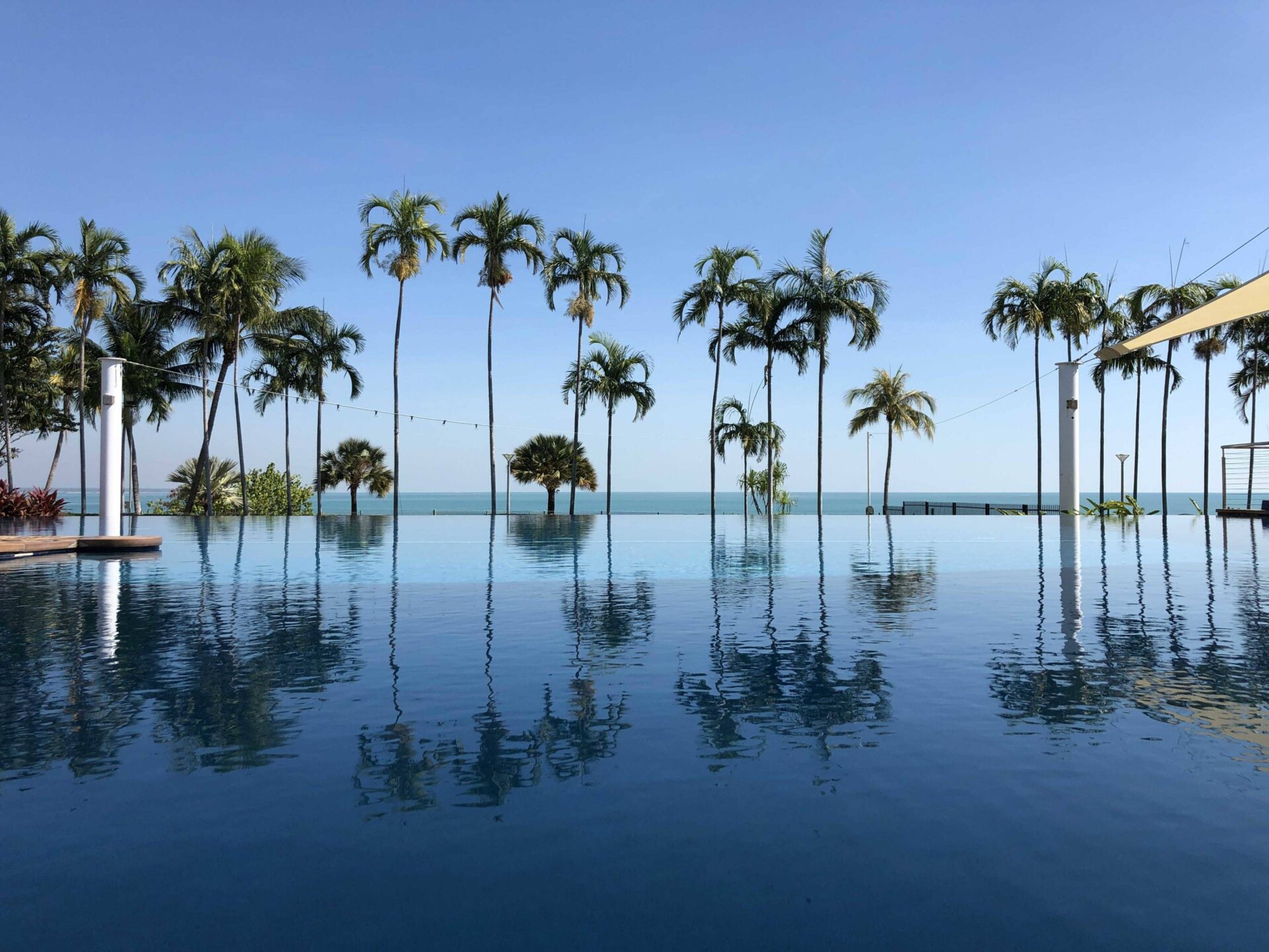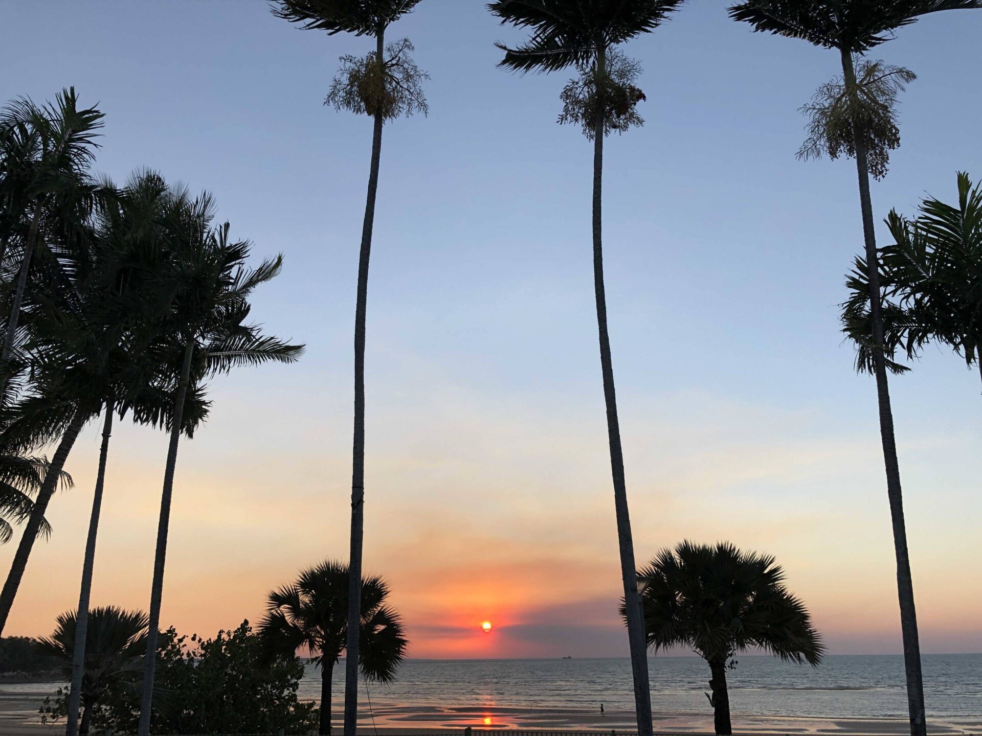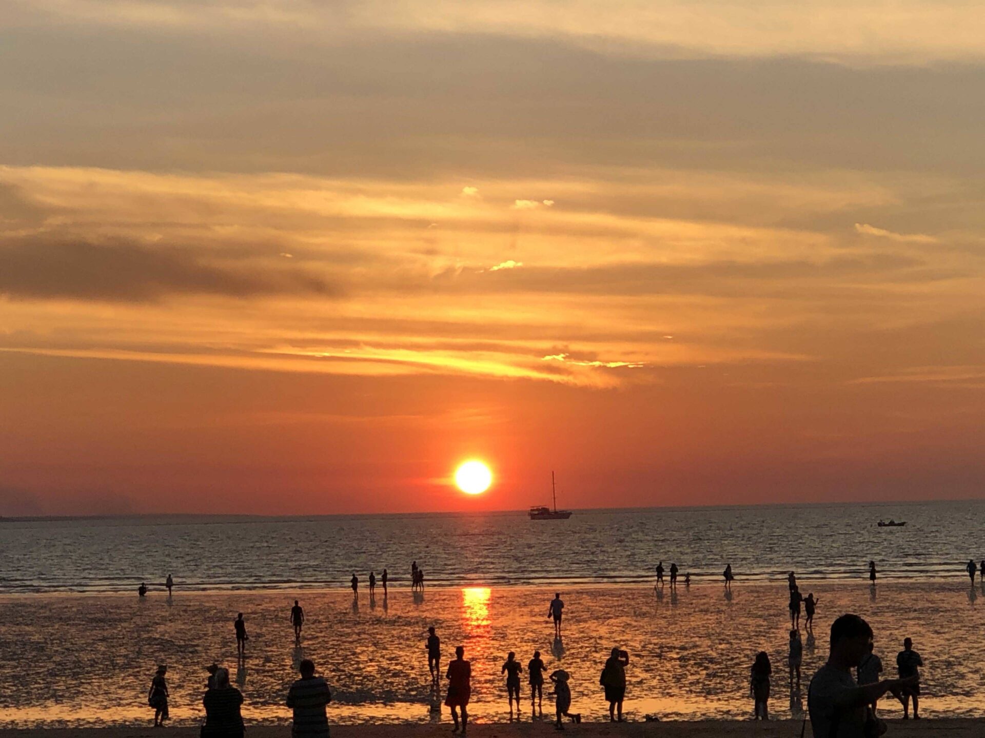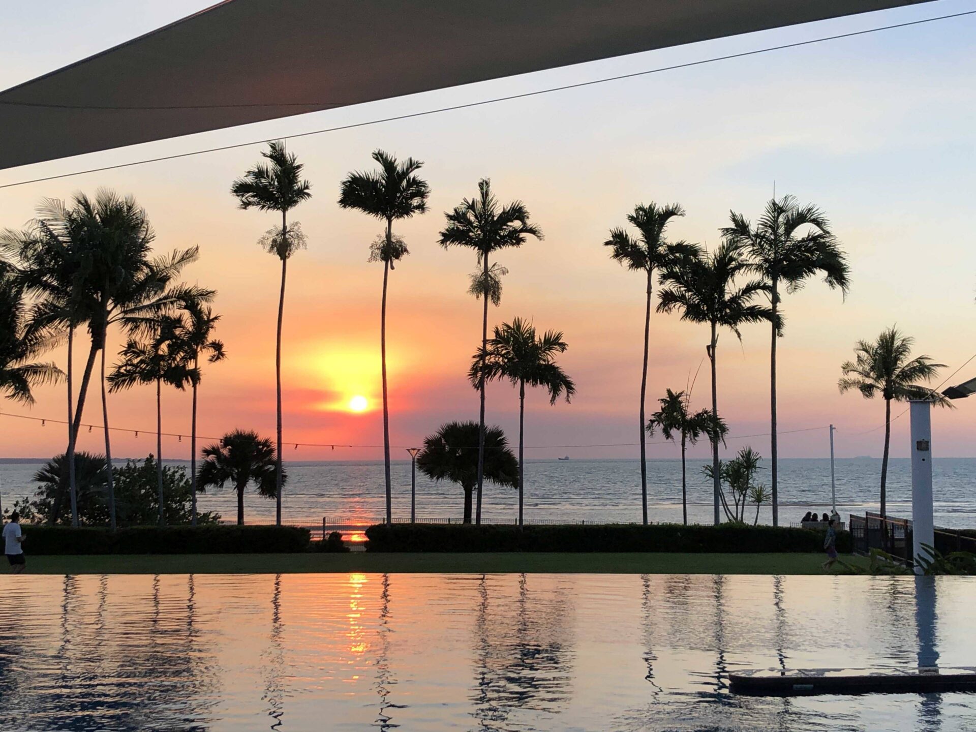 Nachdem wir im Hotel noch etwas Wäsche gewaschen hatten, zog es uns an den Pool. Der Infinity Pool mit Blick über den Beach sieht richtig toll aus. Wir machten es uns gemütlich und genossen den Tag bei bestem Wetter. Gegen Abend gingen wir zum Mindil Sunset Market, unweit vom Hotel entfernt. Der Markt ist mit Essständen übersäht, vor allem asiatische Kost ist reichlich gut vertreten. Dies war dann auch unsere erste Wahl fürs Menü. Mit einer Schale Asia Food standen wir mit hunderten anderen Leuten am Strand und schauten der untergehenden Sonne entgegen. Dies war unser letzter Sonnenuntergang in Darwin, denn morgen geht die Reise weiter nach Sydney.