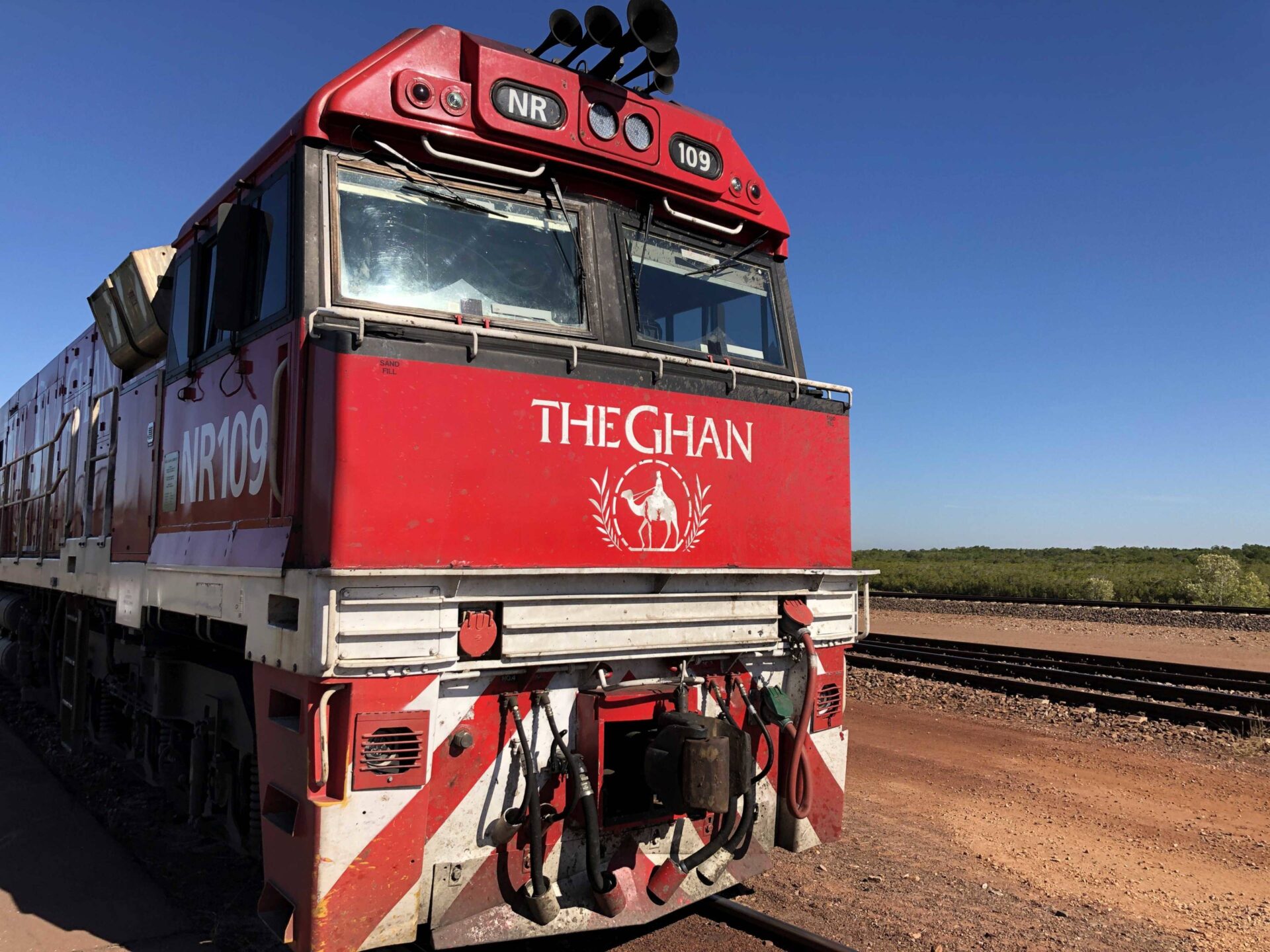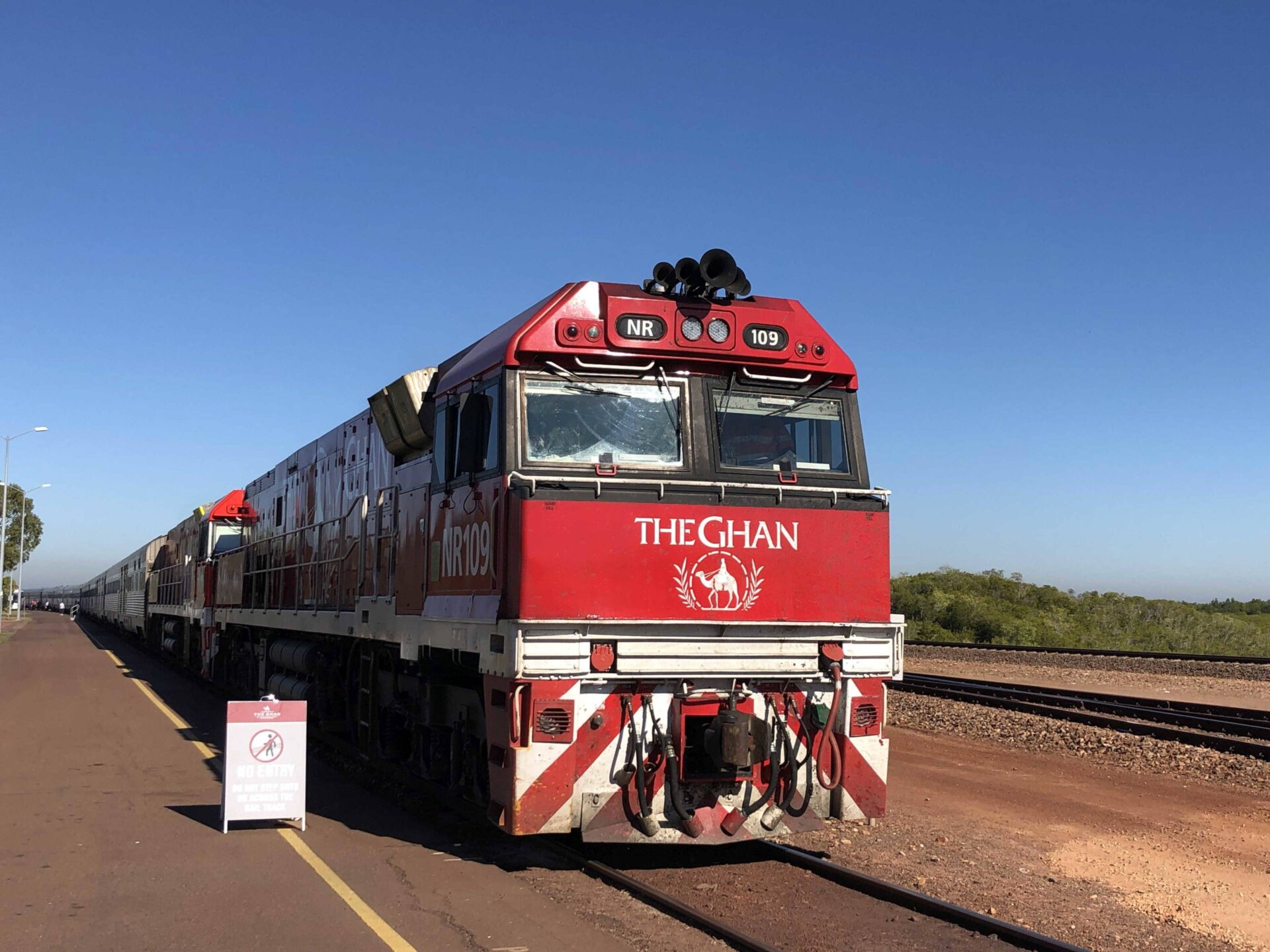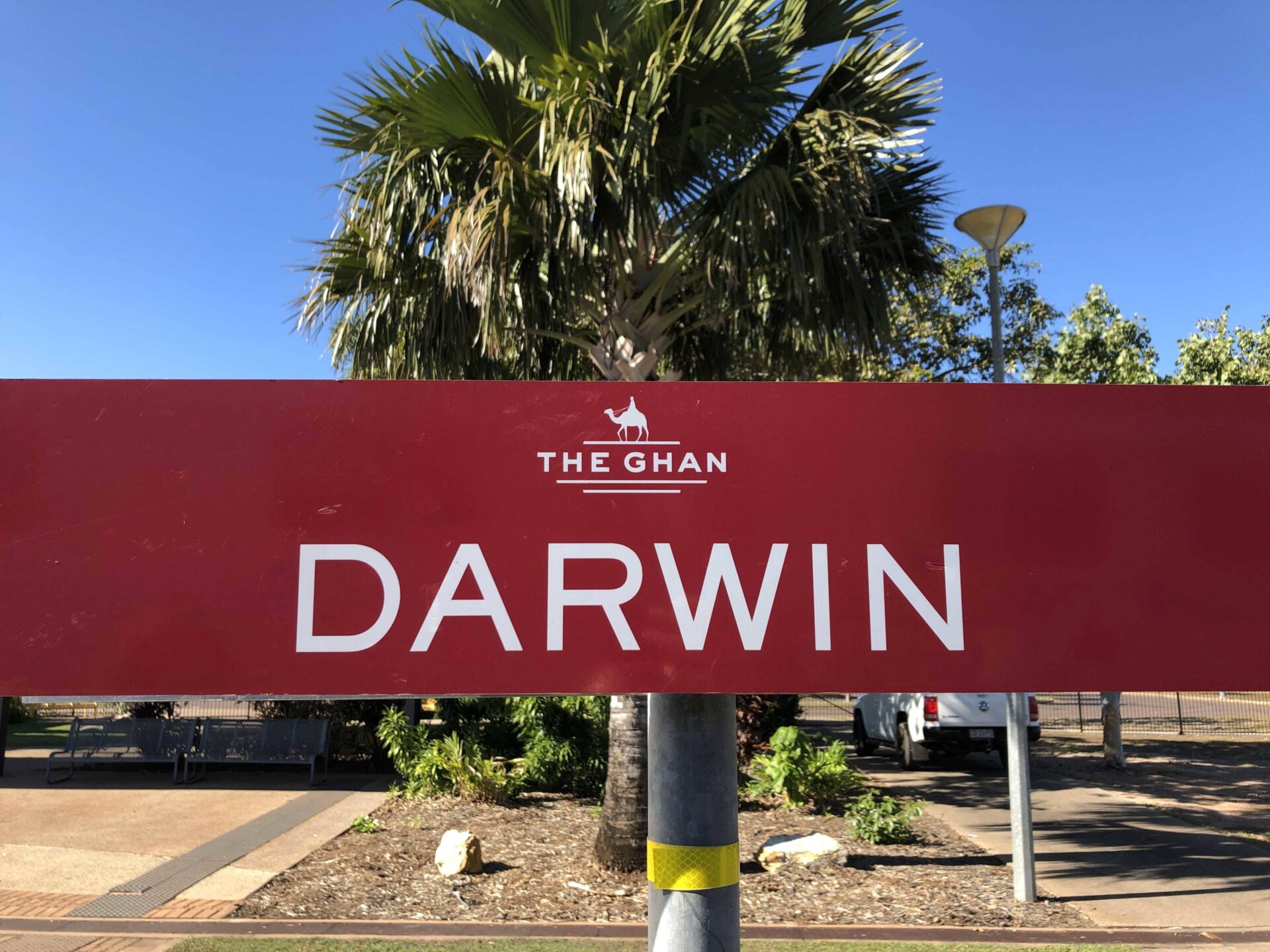 Kurz nach 09:00 Uhr morgens setzten wir uns in den mittlerweile leeren Camper und fuhren zum Bahnhof von Darwin. Nicht, dass wir mit dem Zug weiterreisen würden, aber hier im Bahnhof steht ein spezieller Zug: The Ghan. Wir hatten schon in Katherine den alten Bahnhof besucht und entlang dem Stuart Highway die Bahnlinie ein paar Mal gekreuzt. The Ghan verlässt jeweils am Mittwoch um 10:00 Uhr Darwin, durchquert den Kontinent bis nach Adelaide und kommt am Dienstagabend wieder zurück nach Darwin. Der Zug braucht für die 2‘979 Kilometer bis nach Adelaide 4 Tage. Kurz nach 10:00 Uhr verkündete ein lautes Hornen die Abfahrt des Ghan. Die 403 Meter lange und über 800 Tonnen schwere Zugskomposition mit zwei Loks nahm langsam Fahrt auf. Das ist sicherlich ein ganz tolles Erlebnis mit diesem Zug quer durchs Outback zu fahren.