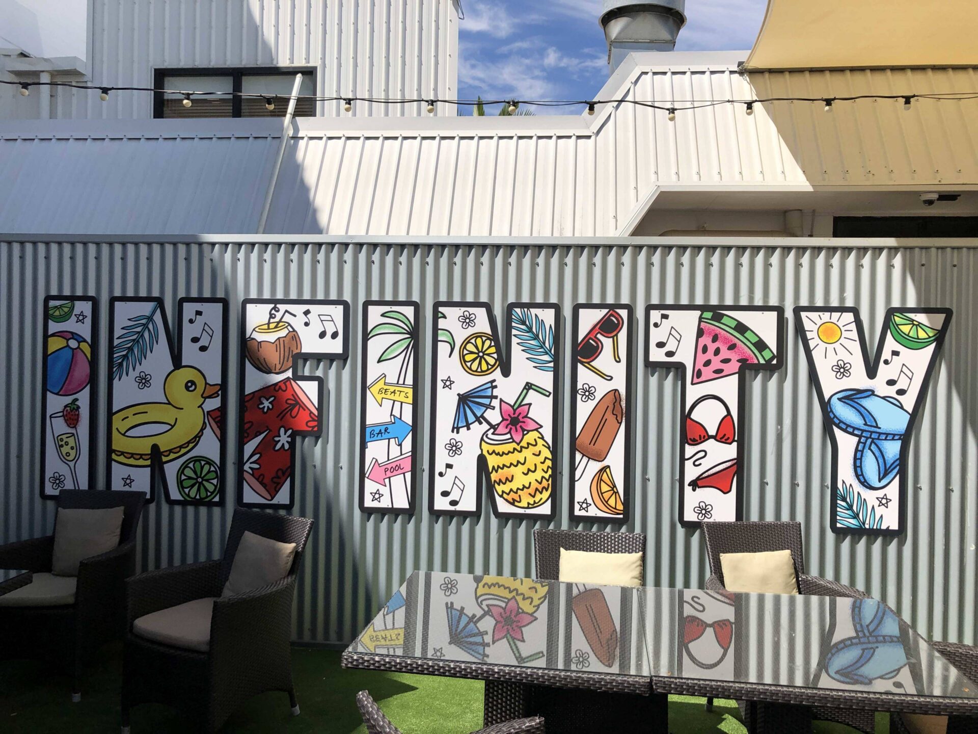 Zurück im Hotel bezogen wir das Zimmer und breiteten unser Gepäck aus. Dann zog es uns an den Pool mit Sandstrand, welcher recht cool gemacht ist. Aber es war auch zu cool, um zu baden, so dass wir einfach die Sonne genossen. Vor dem Nachtessen genossen wir dann den Sonnenuntergang direkt am Strand vor dem Hotel. Einfach toll, wie die glühende Kugel im Meer verschwand. Mit Blick aufs Meer genossen wir beim Italiener auf der Terrasse ein feines Nachtessen. Gut gesättigt setzten wir uns nochmals an einen Automaten im Casino. Der Verlust von heute Morgen konnten wir nicht auf uns sitzen lassen. So versuchten wir das Glück beim «Wheel of Fortune» und bei «Bubbles». Nach etwa 1,5 Stunden auf und ab mit dem Kontostand beendeten wir das Zockervergnügen. Gesamtbilanz des Tages: AUD 30 Verlust, jedoch viel Fun.