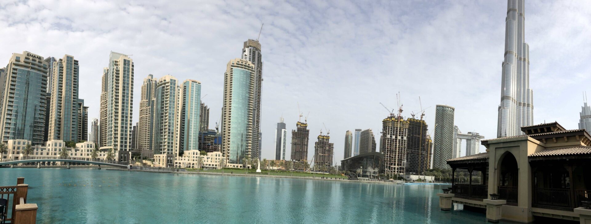 Infolge Jetlags und frühem Feierabend waren wir heute Morgen richtig früh wach. Und so genossen wir als erstes ein Bad im riesigen Pool. Wenn man dem silberscheinenden Gebäude nebenan langsam emporschaut, endet der Blick an der Antennenspitze auf einer Höhe von 828 Meter. Seit 2008 ist der Burj Khalifa das höchste Gebäude der Welt. Es überragt sämtliche umliegenden Gebäude um wohl mehr als das Doppelte.