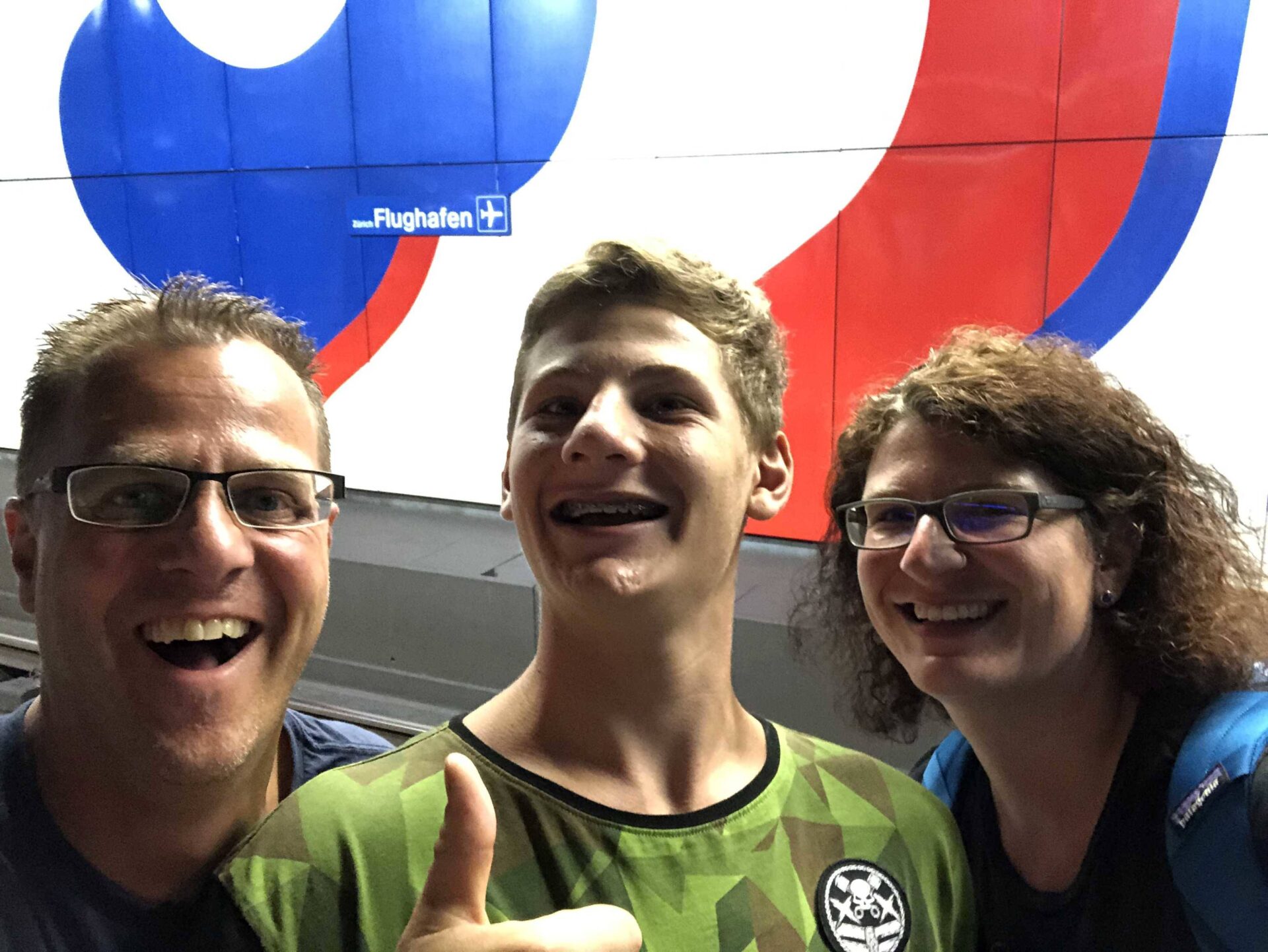 Die Sitze beim Notausgang waren wieder perfekt für einen angenehmen Flug. Pünktlich um 08:40 Uhr startete der A-380-800 mit Ziel Zürich. Der gut 6,5 Stunden dauernde Flug war recht ruhig und kurzweilig. Zum ersten Mal hatten wir die Zollabfertigung mit der neuen App bereits vorerfasst und somit mussten wir nur noch die Zahlung aktivieren. Dies machten wir noch vor der Gepäckausgabe und das Thema Verzollung war bereits erledigt. Eine richtig innovative Angelegenheit, die wir künftig immer nutzen werden, wenn wir Waren zur Verzollung haben. Das Gepäck liess auf sich warten, doch es kamen alle drei Taschen fast gleichzeitig an. Auch dieses Mal waren wir wieder happy, hat alles geklappt und wir haben alle unsere Sachen wieder beieinander. Wir liefen am Zoll vorbei, kamen durch die Ausgangstür und wollten Richtung Bahnhof steuern, als uns Severin entgegenrannte. Was für eine Überraschung! Damit hatten wir nun gar nicht gerechnet, dass uns Isabellas Neffe am Flughafen in Empfang nimmt, um so herzlicher die Umarmung. Das ist ein tolles Gefühl, wenn nach so einer langen Reise jemand auf dich wartet. Die letzte Etappe unserer langen Reise setzten wir mit dem Zug bzw. der WSB fort und erreichten im Laufe des Nachmittags des 3. Augusts unsere Heimat Hirschthal wieder. Home Sweet Home! Gesund, glücklich und mit ganz vielen tollen Erlebnissen, Erfahrungen und Eindrücken kamen wir wieder an den Ort zurück, wo vor 87 Tagen alles begann.