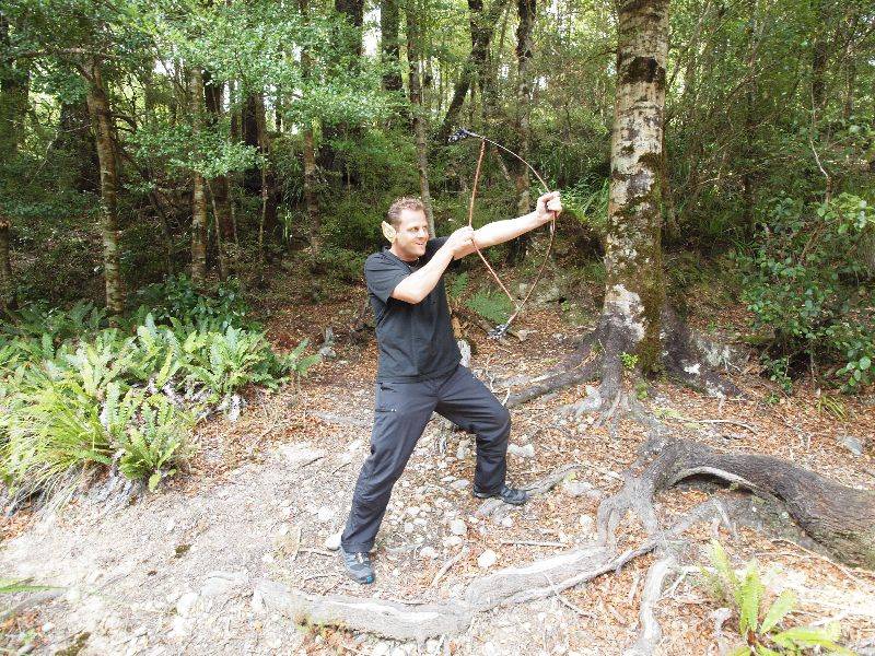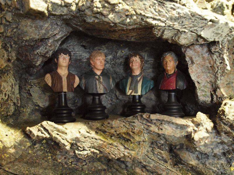 Mal wieder stand Middle Earth im Zentrum unseres Interesses. Wir starteten mitten in Wellington eine Herr der Ringe Tour und fuhren auf den Mount Victoria, dem Hausberg der Stadt. Leider fand dort ein Mountainbike Rennen statt und wir konnten die Drehorte nicht besuchen. Es wurden dort die Szenen gedreht von Outer Shire, Dunharrow, Race to the Ferry und Escape from the Nazgul, dort wo sich die vier Hobbits unter der Wurzel eines riesigen Baumes vor einem schwarzen Ritter versteckten. Statt dessen machten wir einen Besuch bei Weta Digital Ltd., dem Studio, das für die Produktion der Herr der Ringe Filme die Requisiten und Masken herstellte, Spezialeffekte erstellte sowie die ganzen digitalen Animationen zauberte. Die Firma, an der auch Regisseur Peter Jackson seit 1994 beteiligt ist, war 7.5 Jahre lang mit der Produktion dieser Film Trilogie beschäftigt. Ausserdem wurden dort Filme wie The Last Samurai, die Legende des Zorro, King Kong, Avatar und viele weitere produziert. In einer kleinen Ausstellung konnten wir verschiedene Requisiten aus dem Film betrachten, wie die Schwerter und Rüstungen der Ritter sowie Miniatur Figuren aller Darsteller. Nachdem wir Gollum in echter Grösse gesehen hatten, machten wir uns auf den Weg nach Rivendell, ein Ort in Middle Earth, in dem die Elfen lebten. Das Erscheinungsbild des Rivendell Tals, nach Vorstellungen des Schriftstellers J.R.R. Tolkien, stammte von seinen Wanderungen 1911 im Lauterbrunnental (darauf sind wir besonders stolz, vor allem Jürg!), wurde aber in Upper Hutt, Neuseeland gedreht. Von November 1999 bis März 2000 wurde dort das Filmset aufgebaut und anschliessend während zwei Monaten mit einer Crew von über 300 Leuten gedreht. Eine Szene daraus war diese, als Frodo nach einer Messer-Attacke bei den Elfen in einem Schlafzimmer gepflegt wurde. Von den ganzen Kulissen war natürlich nichts mehr zu sehen. Mit Elfenohren und einem Pfeilbogen stellten wir eine typische Legolas (Orlando Bloom) Pose im Wald dar.