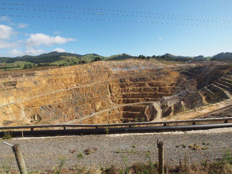 Von Hobbiton aus fuhren wir an die Bay of Plenty und übernachteten in Strandnähe auf einem Campingplatz. In Waihi konnten wir in die Tagebau Grube der Martha Mine Gold- und Silbermine schauen. Die grösste Mine Neuseelands hat eine Länge von 850 Meter, 600 Meter Breite und eine Tiefe von 250 Meter. Das ist eine riesig grosse Grube. Von dort aus fuhren wir rund um die Coromandel Halbinsel. Es war nicht gerade der Hit mit unserem langen Fahrzeug über die kurvenreichen Strassen zu fahren. Doch der Ausblick über die subtropischen Regenwälder in die verschiedenen Meeresbuchten kompensierte die mühsame Fahrt. In Whitianga wollten wir das James Cook Denkmal besichtigen. Das war aber auf der anderen Seite des Bucht und so hätten wir einen grossen Umweg machen müssen. Das Denkmal erinnert an die Ankunft in Neuseeland 1769 durch den Entdecker James Cook mit der HMS Endeavour.