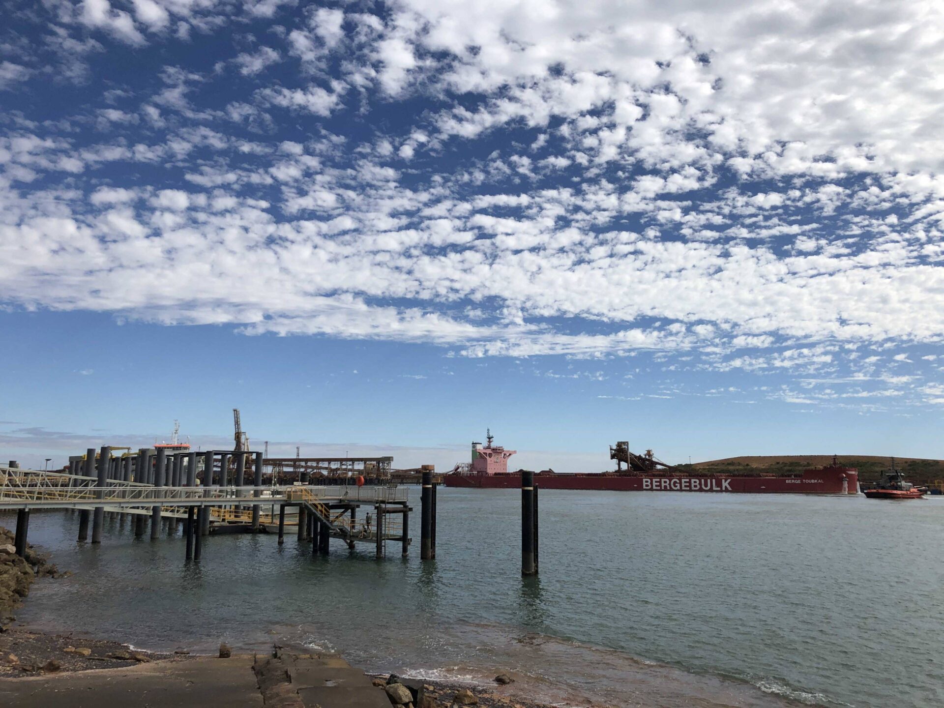 Nebst den Road Trains erreichen auch Güterzüge mit in einer schier unendlichen Länge die Hafenstadt. Der Hafen war dann auch unsere Anlaufstelle in Port Hedland, um dem Geschehen des Güterumschlages etwas zuzusehen. Vom Dome Cafe aus schauten wir zu, wie die voll beladenen Frachtschiffe mit 3-4 Schleppern auf den Ozean gezogen wurden. Recht eindrücklich zu sehen, wie in den Minen Rohstoffe abgebaut werden und via Strasse oder Schiene zu den Frachthäfen transportiert werden. Wäre sehr interessant, die Wertschöpfungskette weiter zu verfolgen mit der Ausschmelzung in Asien sowie der Aufbereitung zu hochwertigen Baustoffen.