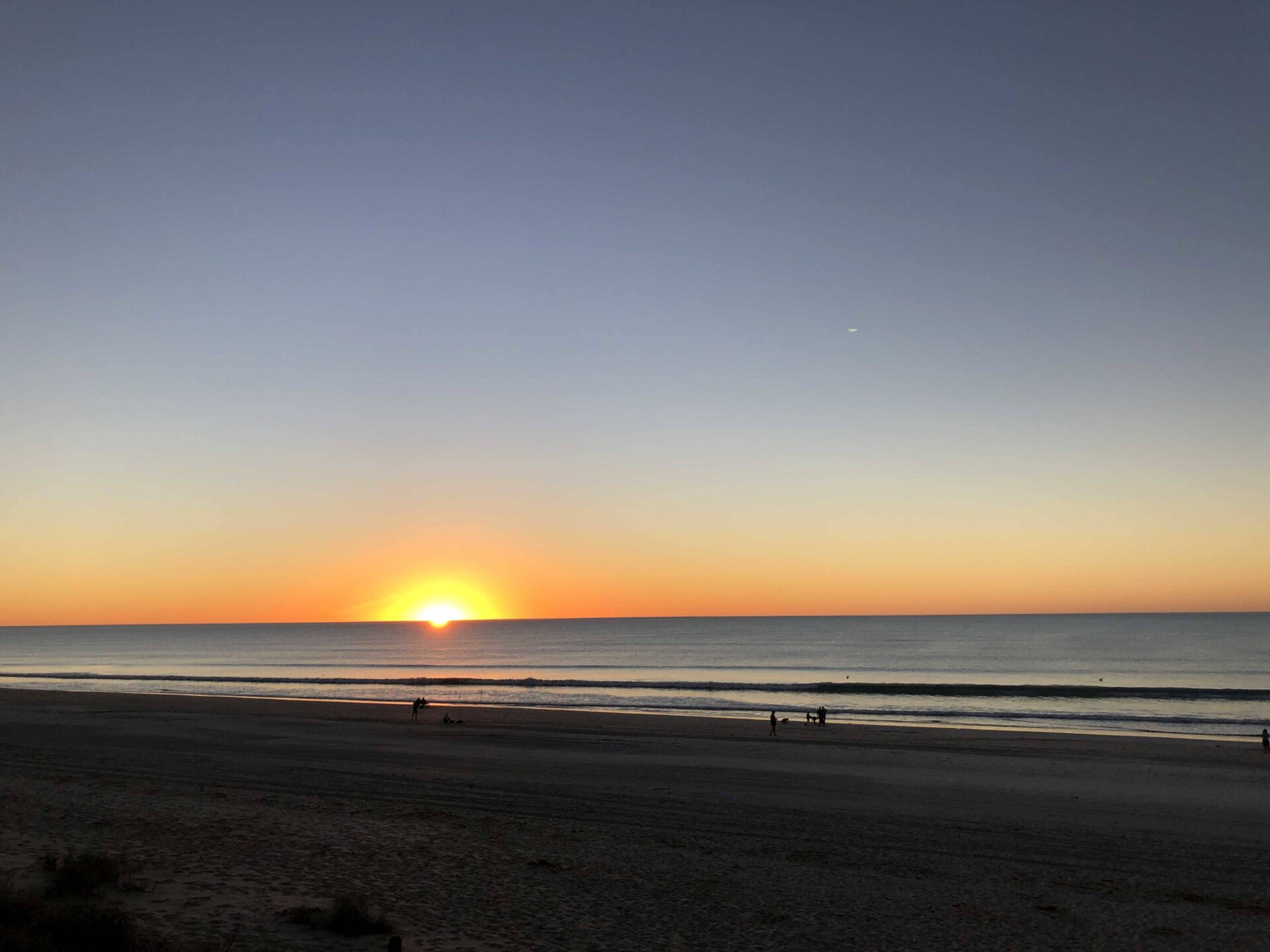 Ausschlafen und Frühstück essen im Dome Cafe am Hafen, das war der Start in den heutigen Tag. Wir waren ja bereits gestern schon am selben Ort und trafen dort Judy und David, welche wir vier Tage zuvor im Karijini Nationalpark schon gesehen hatten. Wie konnte es anders sein, Judy und David waren heute auch hier zum Frühstück bzw. um die ein- und auslaufenden Frachter zu bestaunen. Gut möglich, dass wir sie noch das eine oder andere Mal sehen werden, denn ihr Ziel ist ebenfalls Darwin. Gut gesättigt fuhren wir zum Lookout der Salz Mine und bestaunten die Unmengen des weissen Rohstoffs, welcher aus dem Meerwasser gewonnen wird. Ein kurzer Abstecher in ein Shoppingcenter musste sein, um noch gewisse Besorgungen für die Gibb River Road zu machen. Danach fuhren wir los Richtung Osten mit dem Ziel Eighty Mile Beach. Die Landschaft entlang des Great Northern Highway 1 (mit 3‘204 km der längste Highway in Australien, welcher Perth mit Wyndham verbindet; und ja, er ist immer noch nur zweispurig) ist nicht wirklich spektakulär. Primär flach, nur vereinzelte Hügel, Gebüsch und Sträucher sowie Bäume entlang von Flussbetten. Die letzten 12 km zum Eighty Mile Beach, eine Seitenstrasse, ist ungeteert. Hätten wir nicht gewusst, dass bereits ein gleiches Fahrzeug ein paar Tage zuvor diese Strasse passiert hat, hätten wir es wohl nicht gemacht oder auf halber Strecke umgekehrt. Stellenweise war das Waschbrett so ausgeprägt, dass es unseren Maui fürchterlich durchgeschüttelt hat. Gut angekommen schauten wir am Beach zu, wie die Sonne langsam am Horizont im Meer verschwand.