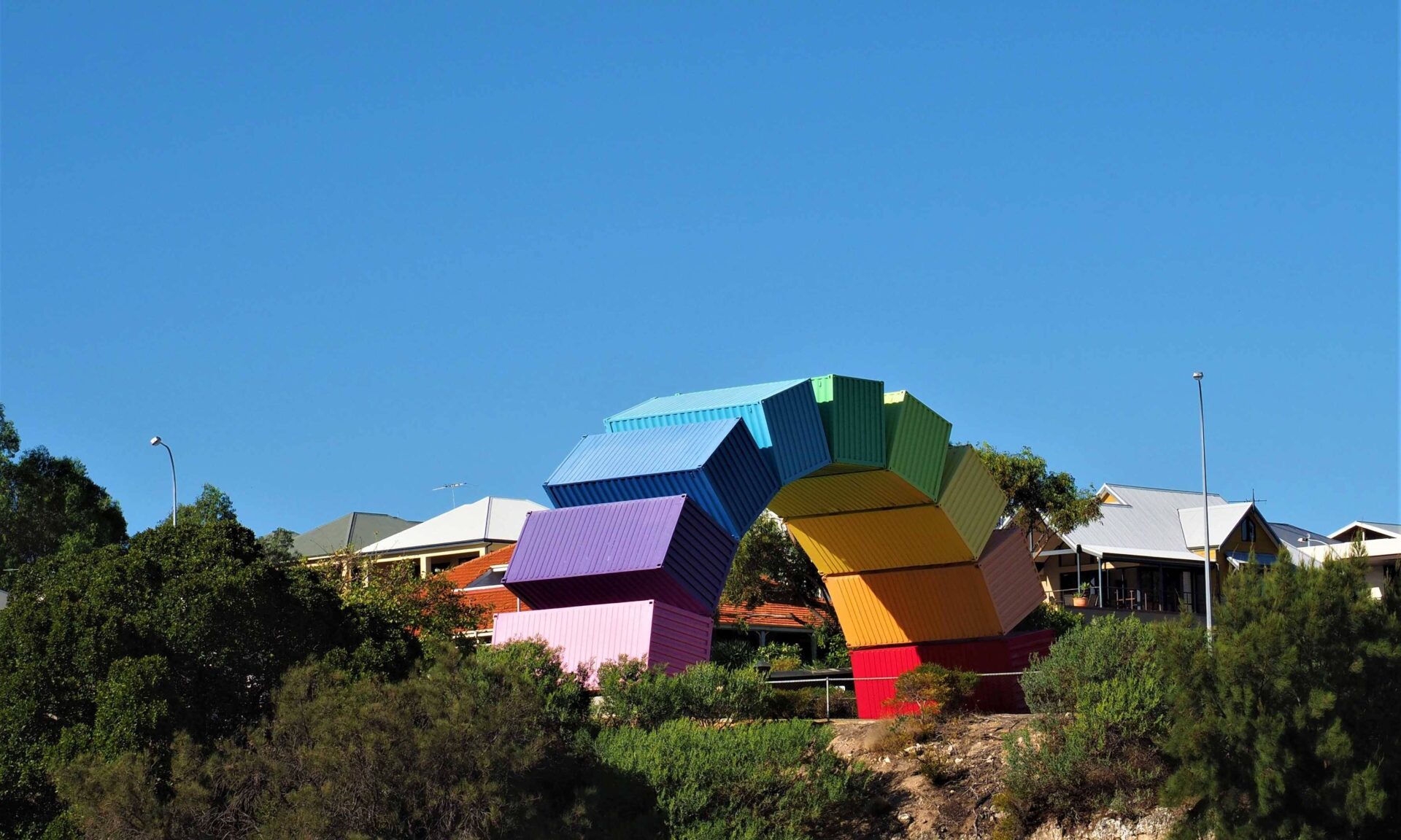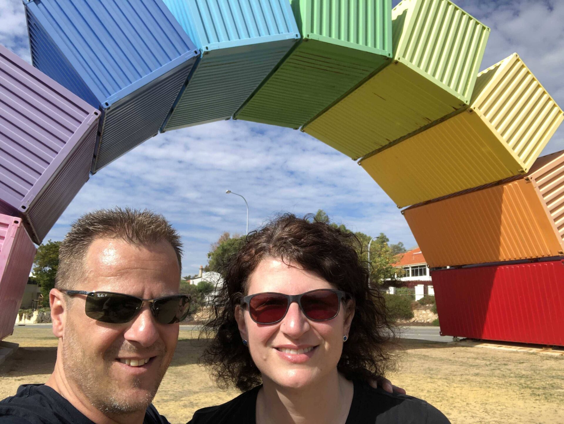 Die erste Nacht im Camper würden wir noch nicht als Highlight betiteln. Auf Grund der bescheidenen Aussentemperaturen von ca. 10 Grad Celsius (ja, es ist bald Winter in Australien) war es eine relativ kühle Nacht zum Schlafen mit offener Dachluke. Das Klimakonzept müssen wir nochmals überdenken und modifizieren. Nach einer warmen Dusche machten wir uns mit dem Bus auf den Weg nach Fremantle. Die kleine Stadt mit ihren viktorianischen Häusern hat sehr viel Charm und Hektik ist hier ein Fremdwort. Ein bisschen der Market Street entlang flanieren und unter den Arcaden einen Chai Latte geniessen, that’s easy life. Ein sehr spezielles Fotosujet brachte uns nach North Fremantle zum Frachthafen. 9 farbige 40 Fuss Container zu einem Bogen aufgestapelt, wie ein Regenbogen. Eine ganz tolle Idee und ein Eyecatcher schlechthin. Zurück in der City entdeckten wir zu Fuss und mit dem CAT-Bus die wunderschöne Stadt. Die Bierbrauerei am Hafen kannten wir schon von unserer letzten Reise. Little creatures der Name und die Marke des Hopfensafts. Die hausgemachten Pizzen passen perfekt zum Bier. Wir liessen es uns schmecken. Auf dem Rückweg zum Camper besorgten wir uns noch eine Kaffeemaschine, damit wir morgens jeweils den Tag mit einem Cafe Latte oder Flat White beginnen können.