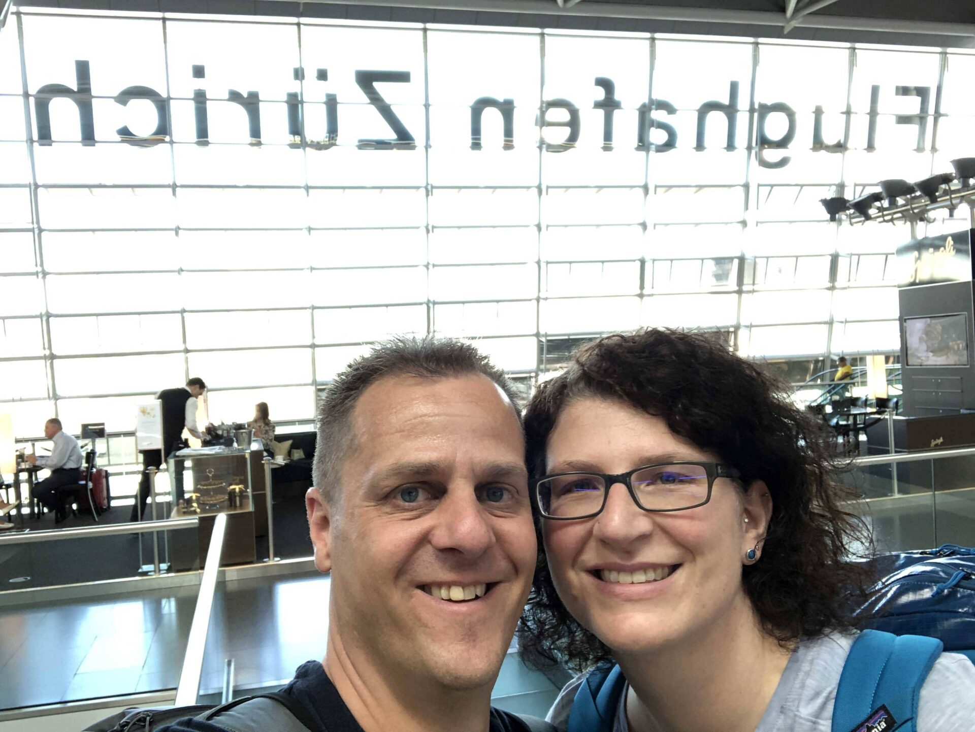 Noch die letzten Verabschiedungen zu Hause und am Bahnhof Hirschthal, dann beginnt um 11:30 Uhr die grosse Reise nach Down Under. Die WSB fährt pünktlich wie immer in Richtung Aarau ab. Gemütlich fahren wir mit dem Zug nach Zürich Flughafen. Weniger gemütlich die Gepäckschlepperei – das hatten wir uns ja selbst eingebrockt! Mit 59.8 Kilogramm hatten wir die Limite bis auf 200 Gramm voll ausgeschöpft. Das nennen wir mal Augenmass! Nachdem unser Handgepäck mit den gefühlten hundert elektronischen Geräten durchleuchtet worden war und wir das Terminal E erreicht hatten, machten wir es uns in der Aspire Lounge gemütlich.