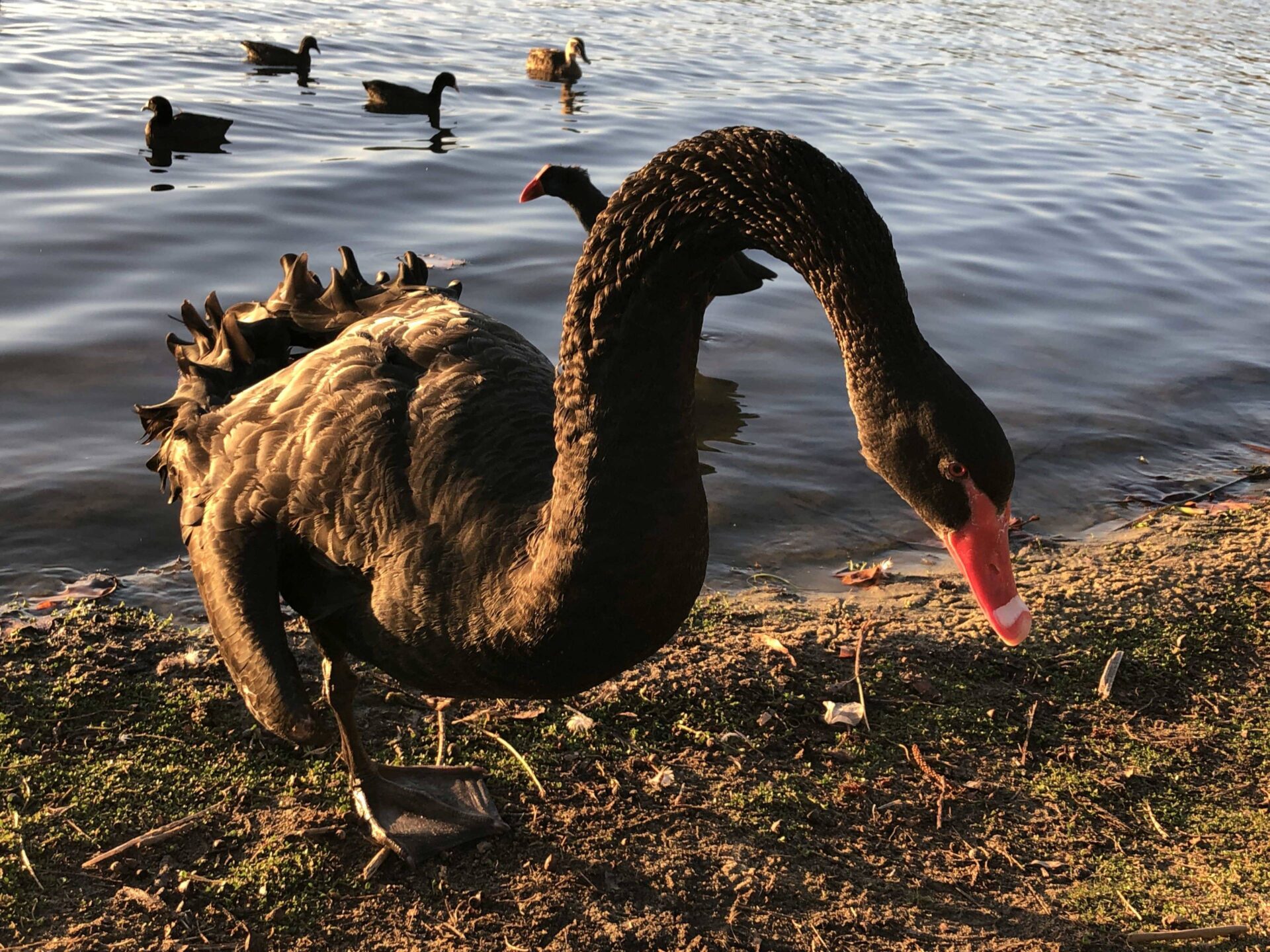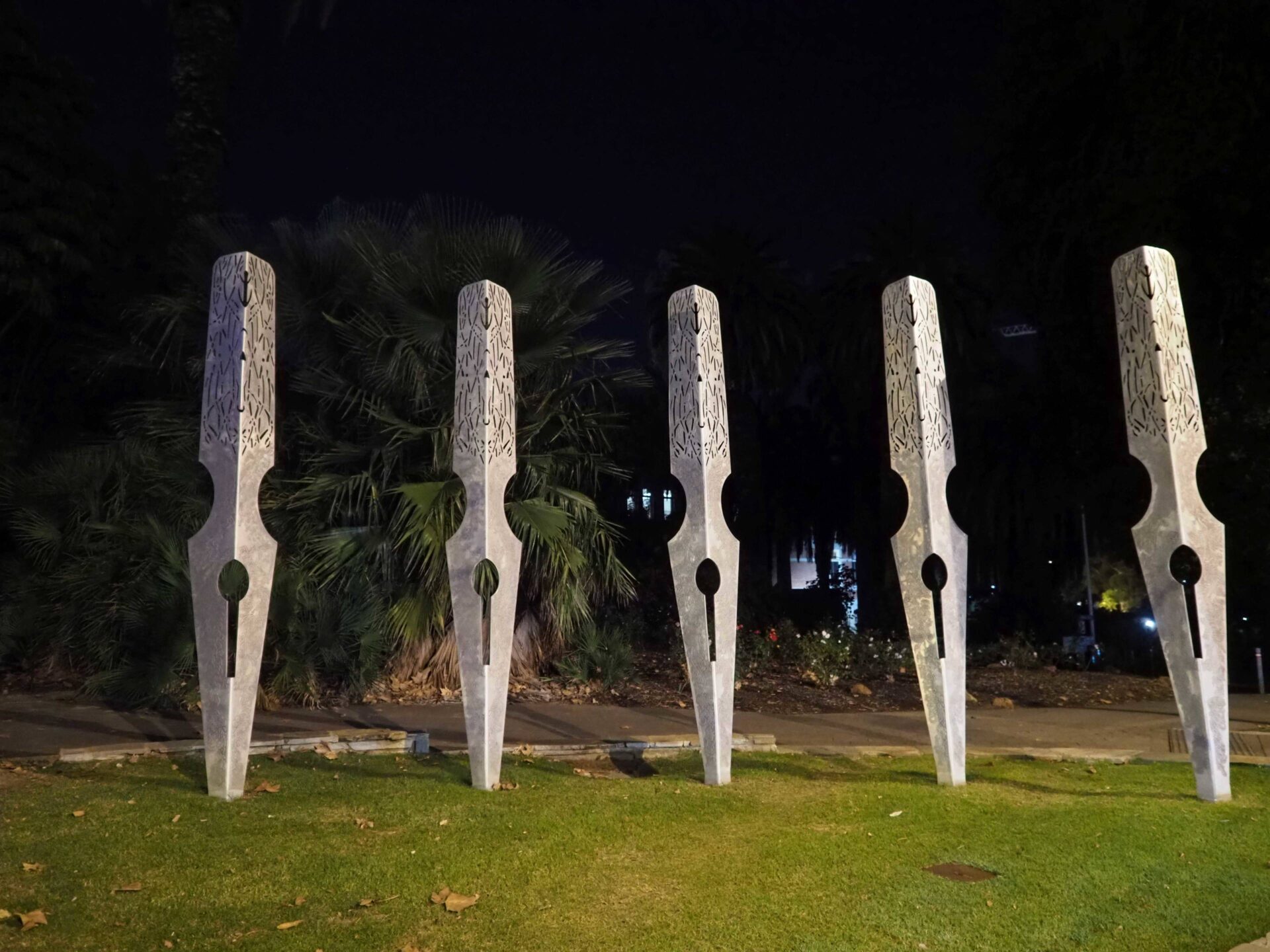 Den Sonntag nahmen wir sehr gemütlich in Angriff. Nachdem wir richtig ausgeschlafen waren, genossen wir ein kleines Frühstück bei The Coffee Club. Anschliessend machten wir noch einige Besorgungen im Watertown Outlet. Zwischenzeitlich kam von unseren Freunden die Anfrage, ob wir uns am Abend zu Fish and Chips treffen wollen. Aber klar doch, da sind wir sofort dabei. Wir verabredeten uns in ihrem Shop in der Innenstadt. Das passte bestens, denn Jürg hatte bereits einen Hintergedanken. Für das Outback Abenteuer braucht es noch einen Crocodile Dundee Hut! In kürzester Zeit hatte Adele das passende Modell für Jürg inkl. Anpassung der Krempe gefixt. Auch für Isabella wurde rasch ein perfekter Outback-Hut gefunden. So machten wir uns mit neuer Kopfbedeckung auf den Weg zum Nachtessen bzw. zum Lake Monger. Sie mussten uns noch unbedingt die schwarzen Schwäne von Perth zeigen. Sehr wahrscheinlich waren gerade mal nur zwei Schwäne im ganzen See, jedoch posierte der eine seine ganze schwarze Federpracht von seiner besten Seite in der untergehenden Sonne. «Check» black swan ebenfalls erfüllt. Vier Portionen Fish and Chips nahmen wir mit an den Strand von Scarborough und genossen das Essen unter freiem Himmel. Auf dem Rückweg nach Perth fuhren wir in den Kings Park am Stadtrand, um die Skyline der Metropole bei Nacht zu geniessen.