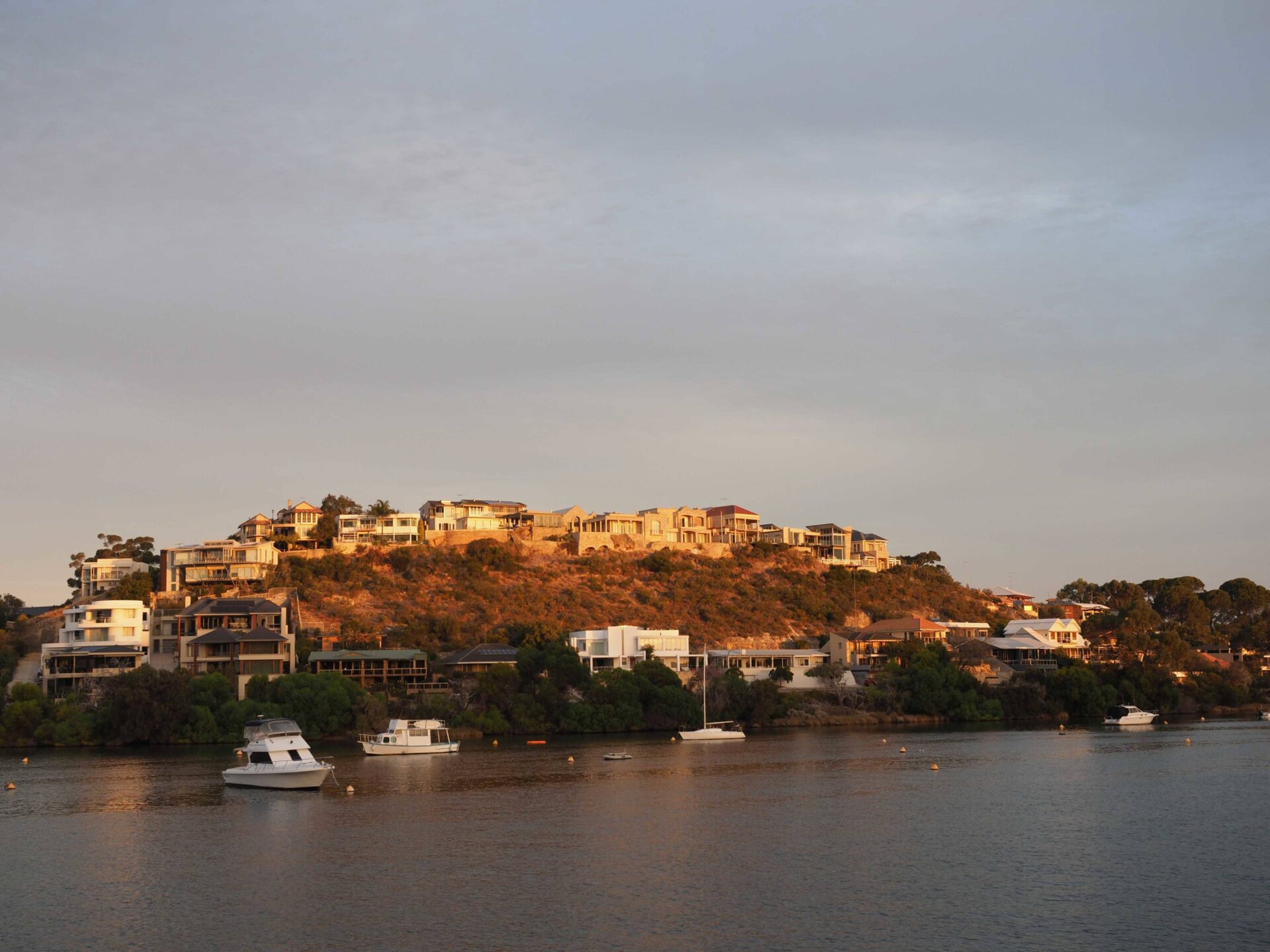 Die autofreie Insel kann am Einfachsten mit dem Velo erkundet werden. So nahmen wir unsere Miet-Bikes und fuhren los, einmal quer durch das Quokka-Land. Zwischenzeitlich hatten wir einige Quokkas entdeckt. Doch ein Selfie zu machen mit den wirklich ganz niedlichen Tierchen entpuppte sich als Herkulesaufgabe. Wir respektieren die Natur, ihre Bewohner und die Regel füttern verboten. Aber wie kriegt man die kleinen Viecher vor die Linse?! Wasser! Wasser ist Natur pur und schadet bestimmt niemanden. So lockten wir die Quokkas mit Wasser an und versuchten auf alle erdenklichen Arten ein Selfie zu schiessen. Wir brauchten x Anläufe, aber mit viel Glück schafften wir die Mission und jeder von uns hatte ein Quokka-Selfie. Getoppt haben wir dies noch mit einem Gruppenselfie. Wir können die Challenge als «check» abhacken. Ein ganz tolles Erlebnis, das nicht so schnell in Vergessenheit geraten wird. Für die Rückfahrt ergatterten wir uns auf dem Oberdeck die besten Plätze (achtern) und genossen die tolle Aussicht über dem Kielwasser. Als wir den Swan River hinauf tuckerten, wurden wir mit einem grandiosen Sonnenuntergang belohnt. Die Farben wechselten von hellem zu kräftigem Gelb hinüber zu Pink, Rot bis Dunkelrot. Einfach nur fantastisch.
