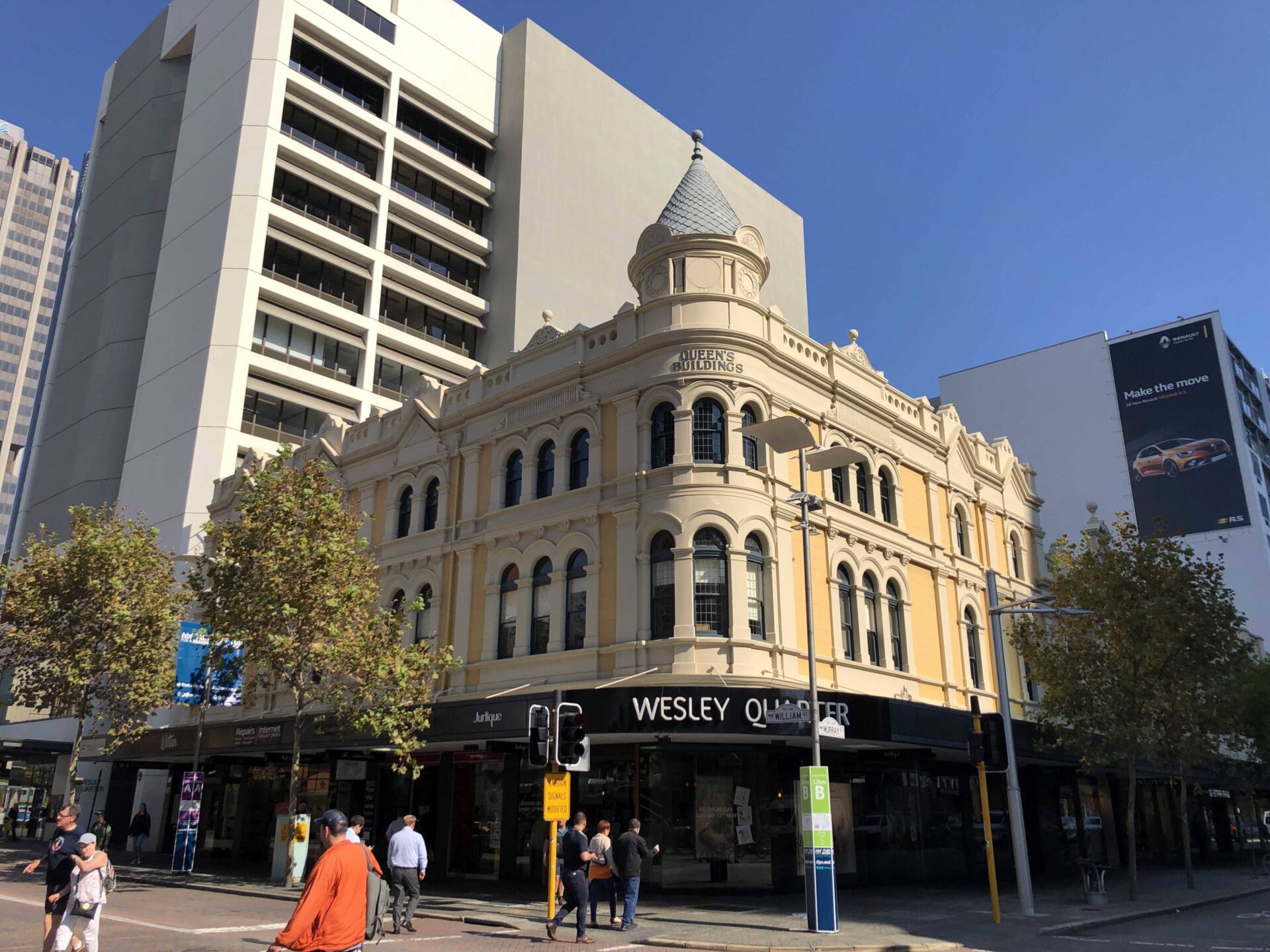 Bei ca. 23 Grad, malerischem Himmel, geprägt durch den Sonnenuntergang, fuhren wir mit dem Taxi nach Downtown ins Hotel QT Perth. Das vor knapp einem Jahr eröffnete Hotel überraschte mit einem wunderschönen Zimmer im 6. Stock.