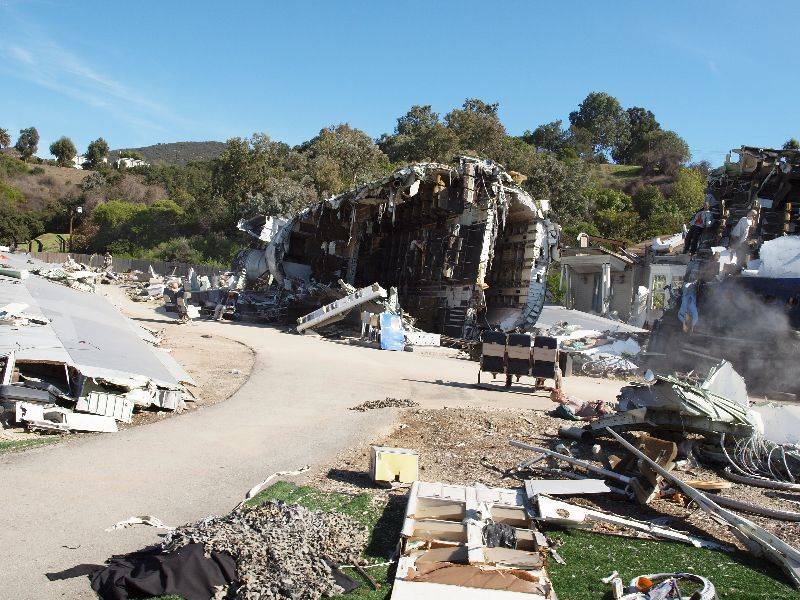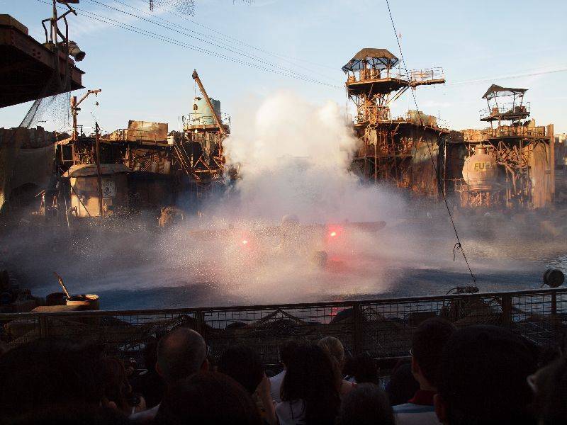 In den Universal Studios ging es hinter die Kulissen. Auf einer Studiotour fuhren wir durch das ganze Studiogelände, wo Filme und Serien gedreht wurden und werden. Ganze Häuserreihen und Stadtteile stehen als Kulissen bereit. In einer 360 3-D Animation erlebten wir „King Kong“ hautnah. Im Fahrzeugpark standen Autos aus den Filmen: Mummy, Magnum, Knight Rider, Back to the Future, The Fast and the Furious. Bei der nächsten Show flogen uns die Autos aus „The Fast and the Furious – Tokyo Drift“ fast um die Ohren. Danach zog ein grösseres Gewitter auf. Es war so heftig, dass plötzlich ein reissender Bach die Strasse herunter schoss. Unser Studiofahrzeug wurde fast von der Fahrbahn gerissen. Bei der nächsten Show in einer U-Bahnstation brach die Decke ein. Ein Tankfahrzeug stürzte auf die Geleise und zu allem Unglück brauste die U-Bahn mit voller Wucht in die heruntergestürzte Decke – ein riesen Inferno. Nach Bekanntmachung mit dem weissen Hai freuten wir uns besonders auf eine Strasse. Die Wisteria Lane aus „Desperate Housewives“. Leider wurde gedreht, niemand war zu sehen und wir fuhren nicht durch die Strasse – so ein shit. Am nächsten Set lag ein zertrümmerter Jumbo aus dem Film „War of the Worlds“. Der reine Wahnsinn, was da alles gemacht wird, um die Zuschauer vor die Mattscheibe zu zerren. Im Anschluss an die Studiotour stand eine live Show auf dem Programm: Waterworld. Ist ja gut, kann man lesen. „Soak wet“ stand auf den grünen Sitzplätzen. Wir suchten uns andere Sitze aus. Und das war sehr weise. Die Show hatte eigentlich noch nicht richtig begonnen und die ersten paar Reihen wurden schon ordentlich abgeduscht. Eine super Stunt-Show mit viel Krach, Feuer und Wasser wurde geboten – eben wie in Hollywood.