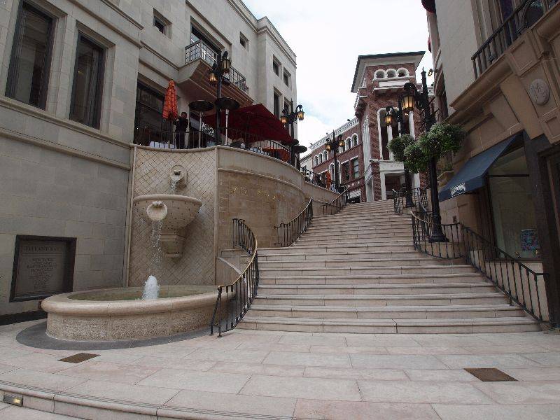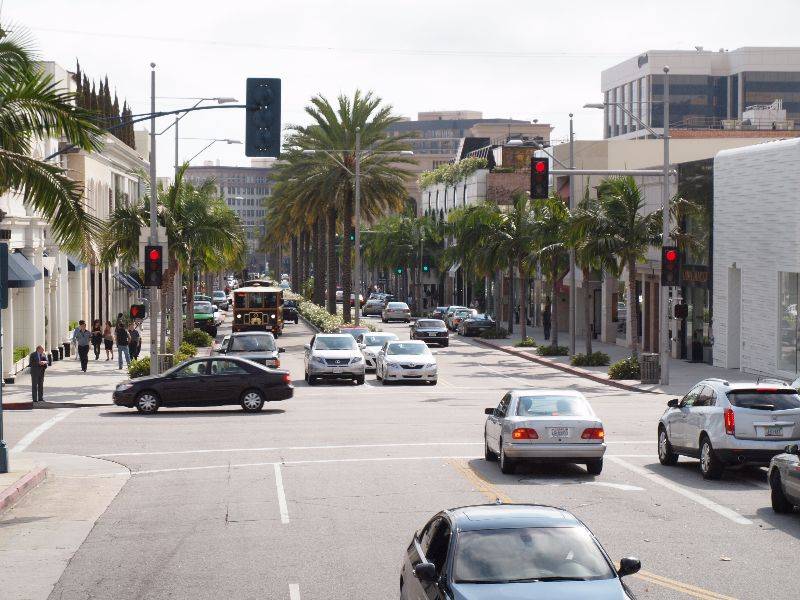 Am folgenden Tag machten wir eine hop-on hop-off Bus-Tour mit dem Ziel, Strand von Santa Monica. Das Wetter machte uns jedoch einen Strich durch die Rechnung (es war saukalt!) und wir kehrten auf halber Strecke wieder um. Die Wartezeit auf den nächsten Bus nutzten wir für einen Besuch am Rodeo Drive. Zu kaufen gab es da nichts für uns, die Zahlen auf den Preisschildern sind viel zu lang. Schöne Boutiquen von Armani, Gucci, Versace, Chanel und Dior, aber auch von Bally waren zu bestaunen. Bijan ist die teuerste Boutique der Welt (wird auch so kommuniziert auf www.bijan.com) und kleidet vom Thomas Gottschalk über Tom Cruise zu Vladimir Putin und Barack Obama die High Society ein. So gehörte es sich auch, dass vor dem Geschäft ein ganz exklusives Auto stand (sehr wahrscheinlich von Herrn Bijan selbst). Der Blickfang, ein Bugatti Veyron 16.4 mit 8.0 Liter Motor, 1001 PS, 2.5 Sekunden 0 – 100 km/h, Höchstgeschwindigkeit etwas über 400 km/h, Preis ab 1.3 Millionen Euro. Wir hatten ja aber ganz andere Probleme zu lösen und so fuhren wir (mit dem Bus, nicht mit dem Bugatti) zurück ins Hotel und zogen warme Kleider an. Danach setzten wir die hop-on hop-off Tour nach Downtown L.A. fort. Die Fahrt ging durch die Hochhäuser im Zentrum, vorbei an Chinatown und Little Tokyo. Die Gebäude am Broadway sind schon ein bisschen in die Jahre gekommen. So wurden diese schon oft als Filmkulisse für Movies mit Handlungen aus vergangenen Zeiten in New York oder Chicago missbraucht. Ab jetzt glauben wir nicht mehr alles, was wir im Fernsehen sehen. Die Rückfahrt nach Hollywood war trotz warmen Kleidern auf dem Highway sehr kalt und windig. Unseren 50. Reisetag schlossen wir mit einem guten Burger im Hard Rock Cafe ab.